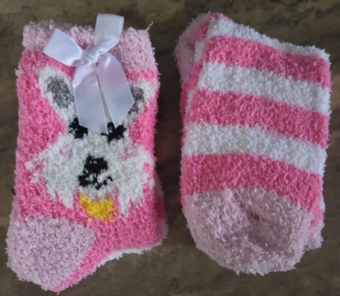 Product Code:White Doggie with Pink Stripes Sherpa Socks